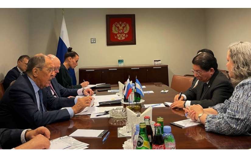 El ministro de Asuntos Exteriores de Rusia, Serguéi Lavrov, ha mantenido este viernes una reunión con su homólogo de Nicaragua, Denis Moncada. El encuentro tiene lugar en el marco del 78.° período ordinario de sesiones de la Asamblea General de la ONU, que se celebra estos días en Nueva York.