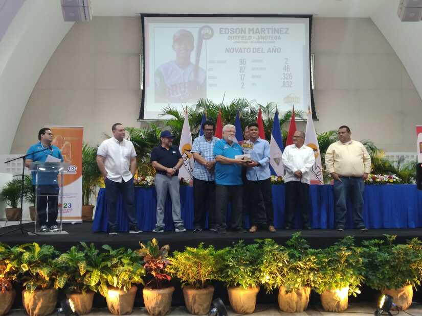 Otro de los premiados fue Noel Martínez Blandón, del equipo Brumas de Jinotega. A él se le entregó la placa al Novato del Año.
