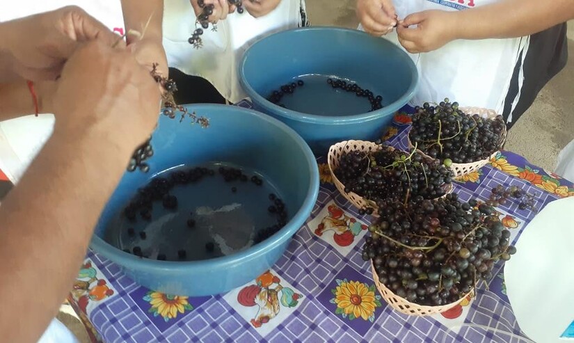 El Taller fue impartido en el viñedo del Protagonista José Jesús Molina, quien junto a su Familia elaboran jugos a base de uva, los que comercializan en su comunidad. Actualmente están diversificando sus productos con la elaboración de vinos artesanales.