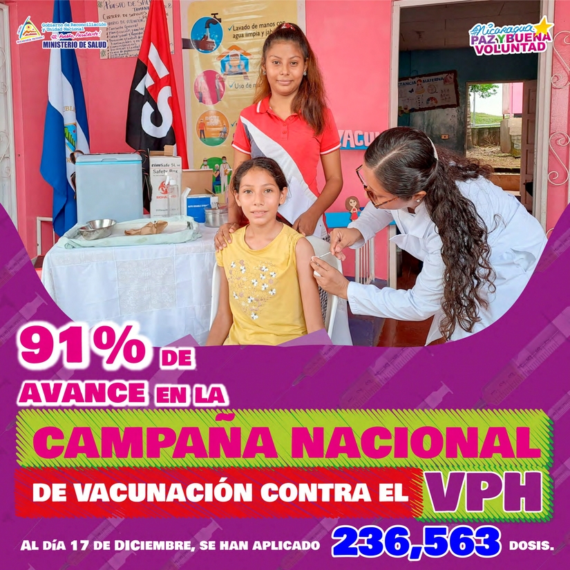 Nuestro Buen Gobierno, con la Red Comunitaria, las Familias nicaragüenses y l@s Trabajador@s de la Salud, realizamos la Campaña Nacional de Vacunación contra el VPH, brindando el siguiente Informe Preliminar al 17 de Diciembre de 2023: