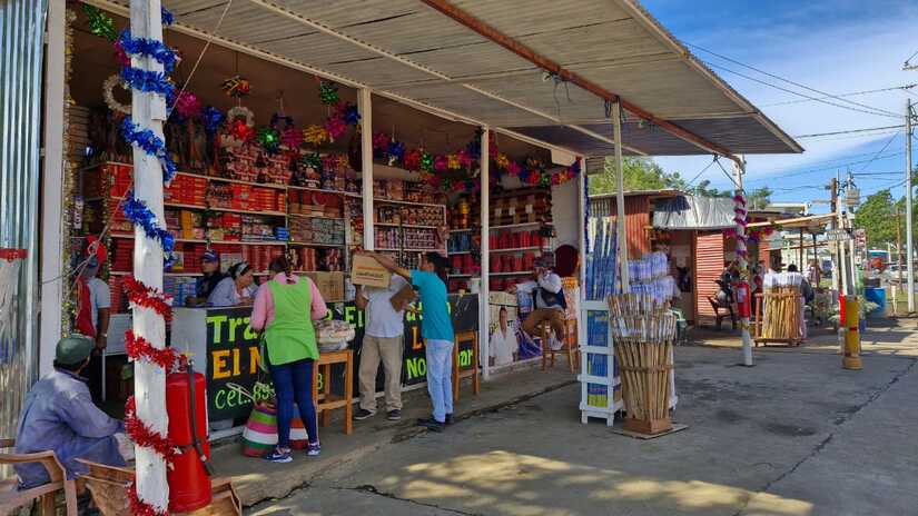 “Estamos listos para el 24 para que se desborde la población a adquirir la pólvora que van a utilizar ese día a las 12 de la noche”, dijo Raquel Saballos también propietaria de uno de los tramos de pólvora ubicados frente al mercado de Mayoreo.