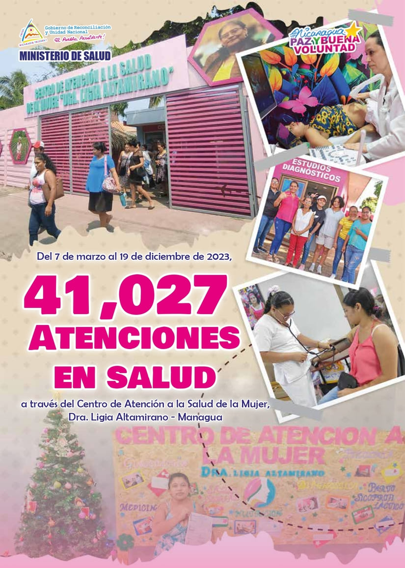 Del 7 de Marzo al 19 de Diciembre de 2023, nuestro Buen Gobierno Sandinista, a través del Centro de Atención a la Salud de la Mujer "Doctora Ligia Altamirano-Managua", ha brindado 41,027 atenciones, detalladas a continuación: