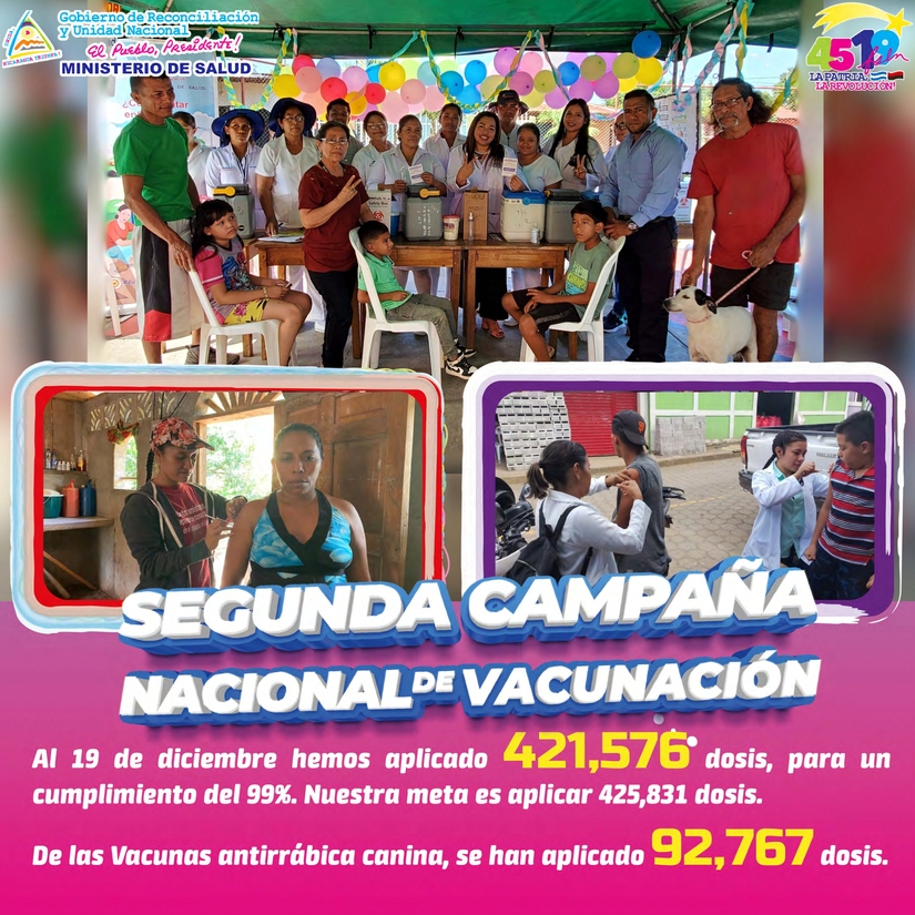 Nuestro Buen Gobierno, con la Red Comunitaria, las Familias nicaragüenses y los Trabajadores de la Salud, realizamos la Segunda Campaña Nacional de Vacunación 2023; al 19 de Diciembre de 2023: