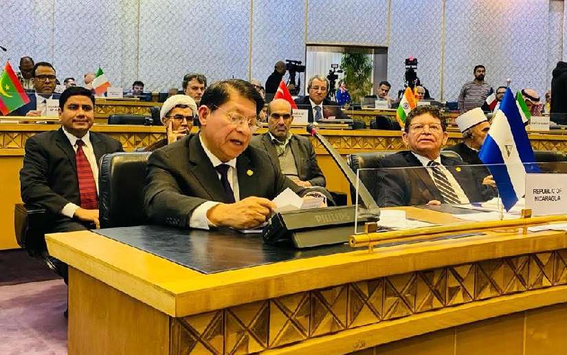 El Compañero Canciller Denis Moncada Colindres, en representación de nuestro Pueblo y Gobierno, transmitió a las Autoridades de Irán y a todas las Delegaciones participantes los cordiales saludos del Pueblo Nicaragüense, del Presidente, Comandante Daniel Ortega Saavedra y la Vicepresidenta Compañera Rosario Murillo. Expresó nuestra Solidaridad Fraterna y Militante al Pueblo Palestino y su justa causa; y agradeció al Pueblo y Gobierno de Irán por la invitación a esta importante Conferencia.