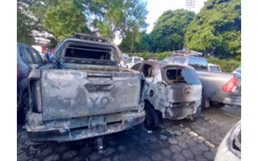Incendio en 8 vehículos usados (1 total y 7 parciales), se encontraban estacionados en predio del Taller de Casa Pellas.