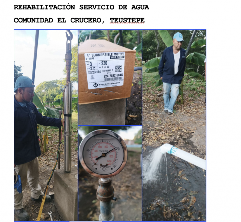 La instalación de nuevo equipo de bombeo, nos permitió restablecer el Servicio de Agua a unas 150 Familias (850 Herman@s) de esta Comunidad.