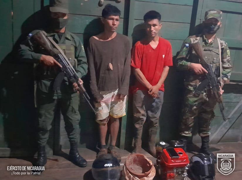 1. En el sector de Las Cruces, se retuvo a los ciudadanos nicaragüenses Ariel Francisco Morales Espinoza y Sandra del Socorro Arcia Guadamúz, quienes trasladaban un paquete con 1,078 gramos de cocaína y 19 gramos de piedras de Crack. Asimismo, en el sector de El Gavilán, se retuvo al ciudadano nicaragüense Misael Antonio Rostrán Sánchez y al ciudadano costarricense Víctor Manuel Rodríguez Sánchez, a quienes se les ocuparon 2 tómbolas y 1 motor estacionario, con las que pretendían realizar minería ilegal en territorio nicaragüense.