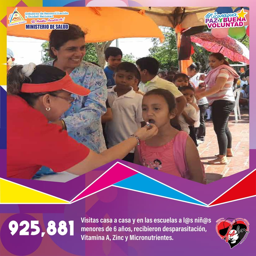 • 925,881 visitas casa a casa y en las escuelas a l@s niñ@s menores de 6 años, recibieron desparasitación, Vitamina A, Zinc y Micronutrientes.