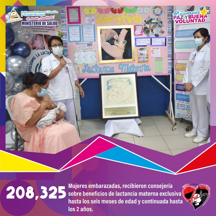 • 208,325 mujeres embarazadas, recibieron consejería sobre beneficios de la lactancia materna exclusiva hasta los seis meses de edad y la continuada hasta los 2 años.