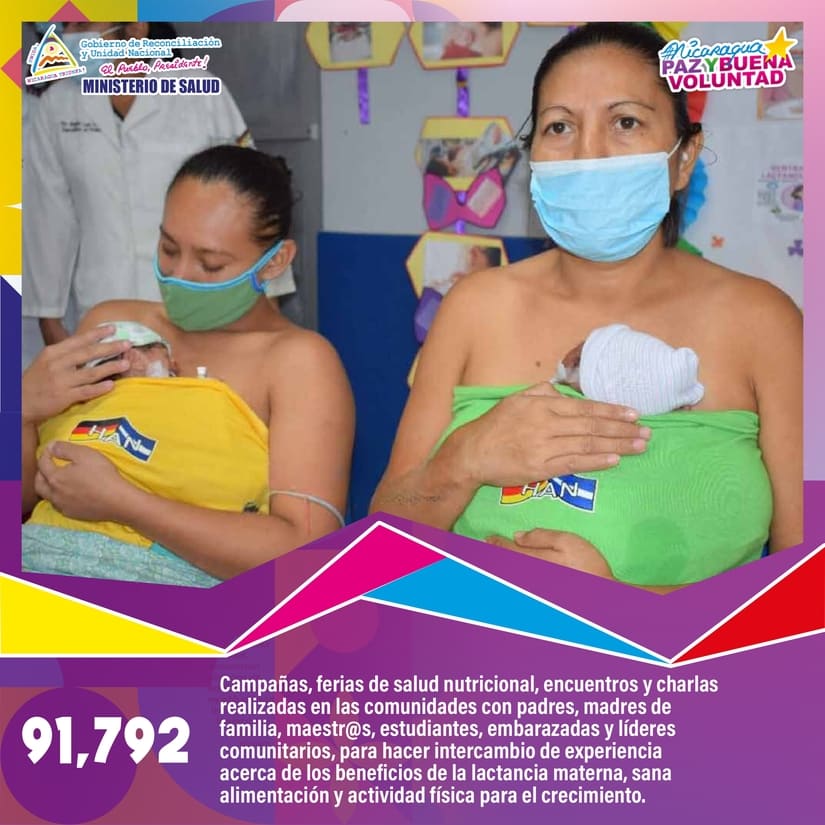 • 91,792 campañas, Ferias de Salud Nutricional, encuentros y charlas realizadas en las comunidades con padres, madres de familia, Maestr@s, estudiantes, embarazadas y líderes comunitarios, para hacer intercambio de experiencia acerca de los beneficios de la lactancia materna, sana alimentación y actividad física para el crecimiento.