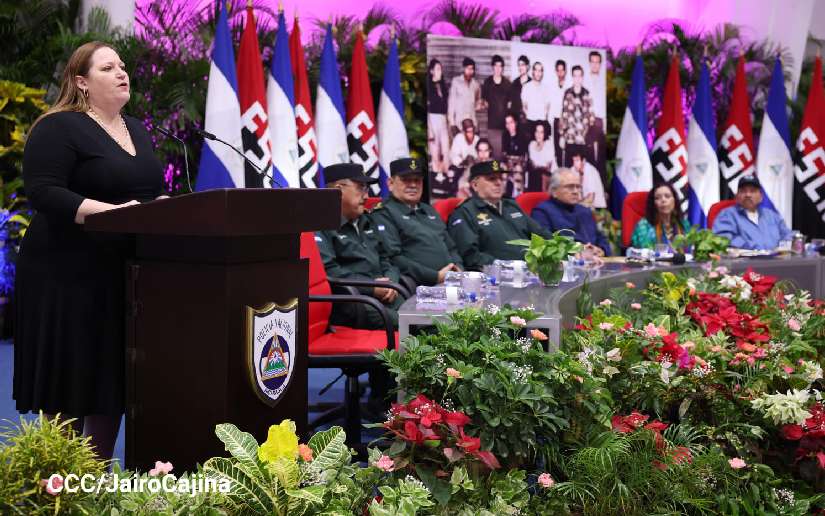 “Cuánta emoción y cuánto honor, pues sobre todo el orgullo porque somos capaces de servir a nuestro pueblo valiente, Pueblo Presidente, con amor, esperanza, con respeto, con valor, con humildad, con dignidad. Nos estamos reorganizando, respetando los rangos y los cargos en concordancia con las leyes y reglamentos de nuestra Policía Nacional, nos sentimos privilegiados de ser parte de esta historia de servir al pueblo, trabajando y defendiendo la paz, la seguridad y la tranquilidad de las familias nicaragüenses y agradeciendo a Dios por permitirnos continuar con nuestro camino, nuevos tiempos y nuevos compromisos, estamos juntos y servimos a las familias, defendiendo el porvenir que merece nuestra Nicaragua Bendita. Agradecemos a usted Comandante Daniel y a usted Compañera Rosario el apoyo incondicional al Ministerio del Interior, parte integrante de la Policía Nacional y reiteramos nuestra obediencia y lealtad a nuestra Jefatura Suprema y nuestra disposición para continuar trabajando para fortalecer la paz, la seguridad, la tranquilidad de las familias”, puntualizó la ministra María Amelia Coronel.