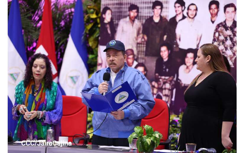 El Comandante Daniel Ortega Saavedra durante el acto de conmemoración del 49 aniversario de la Gesta del Comando Juan José Quezada y el 44 aniversario de fundación del Ministerio del Interior, calificó este 27 de diciembre como un “día histórico” debido a que el pueblo nicaragüense vuelve a contar con instituciones fuertes que garantizarán abortar cualquier intento de los enemigos de la Revolución por destruir la paz y la seguridad de las familias.