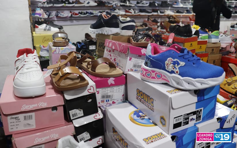 "Tenemos sandalias desde los 150 córdobas, también tenemos para los reyes de la casa zapatos de luces de Batman, de Sonic a 450 córdobas. Acá hay variedad de estilo en sandalias de tacones, en zapatos deportivos. Lo que más está buscando la gente son las sandalias de niñas y zapatitos de niños", detalló Francell Zapata.
