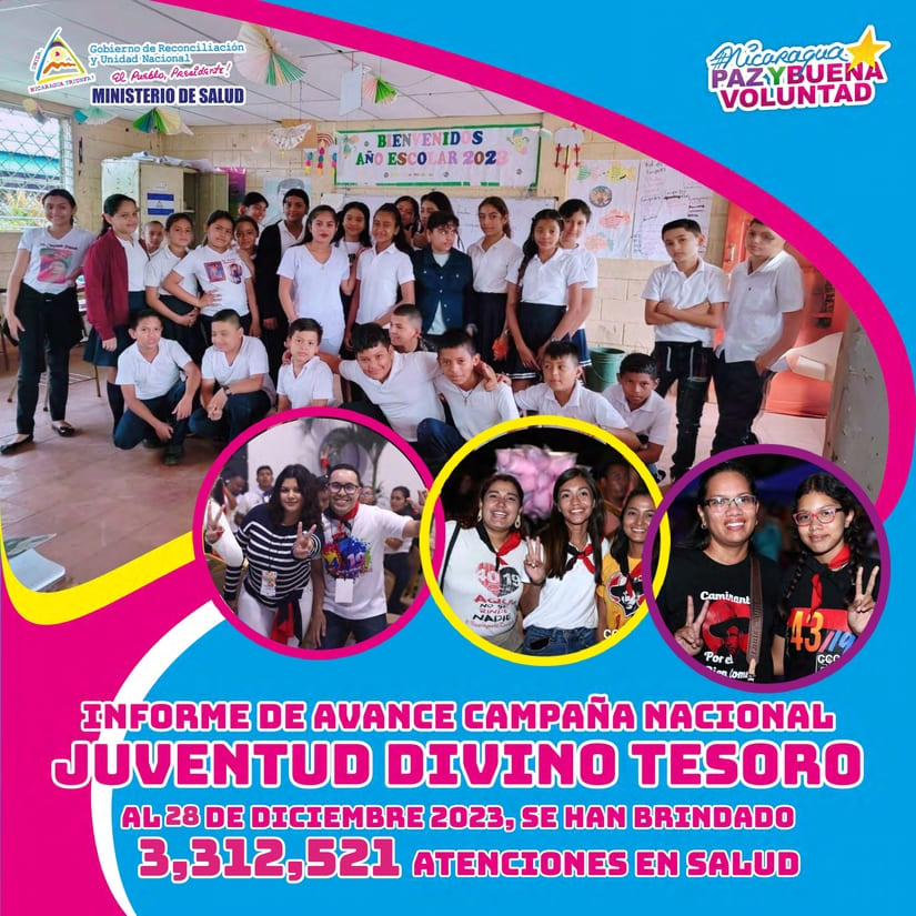 En seguimiento a las actividades de la Campaña Nacional “Juventud Divino Tesoro”, al 28 de diciembre 2023, hemos brindado 3,312,521 atenciones en salud, realizando las siguientes acciones: