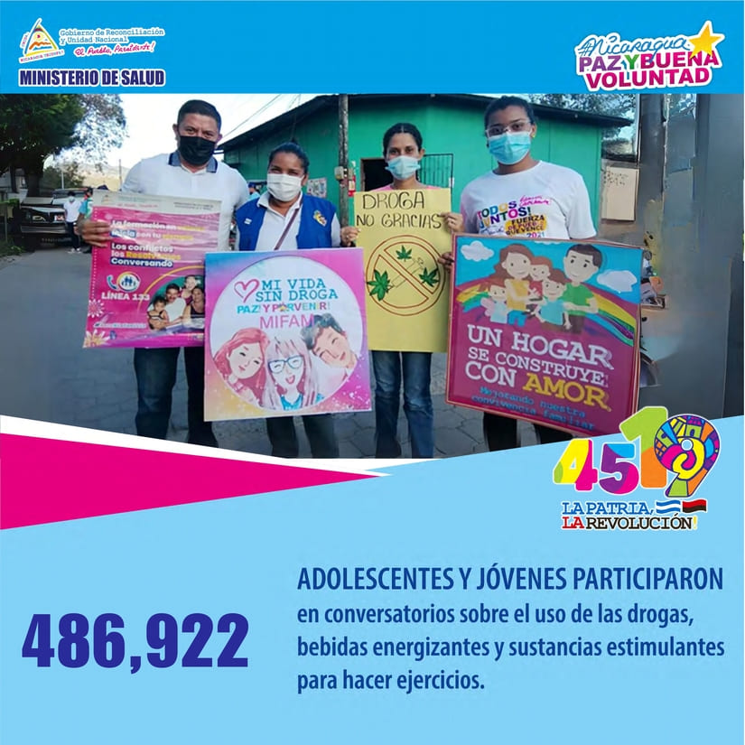 -486,922 adolescentes y jóvenes con el apoyo de la red de jóvenes participaron en conversatorios sobre la prevención del consumo de tabaco, drogas, bebidas energizantes y sustancias estimulantes de ejercicios.