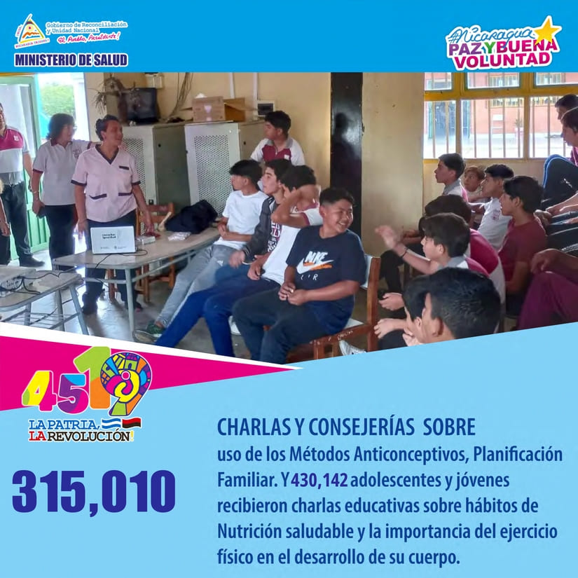 -315,010 charlas y consejerías a adolescentes y jóvenes sobre el uso de los Métodos Anticonceptivos y Planificación Familiar.