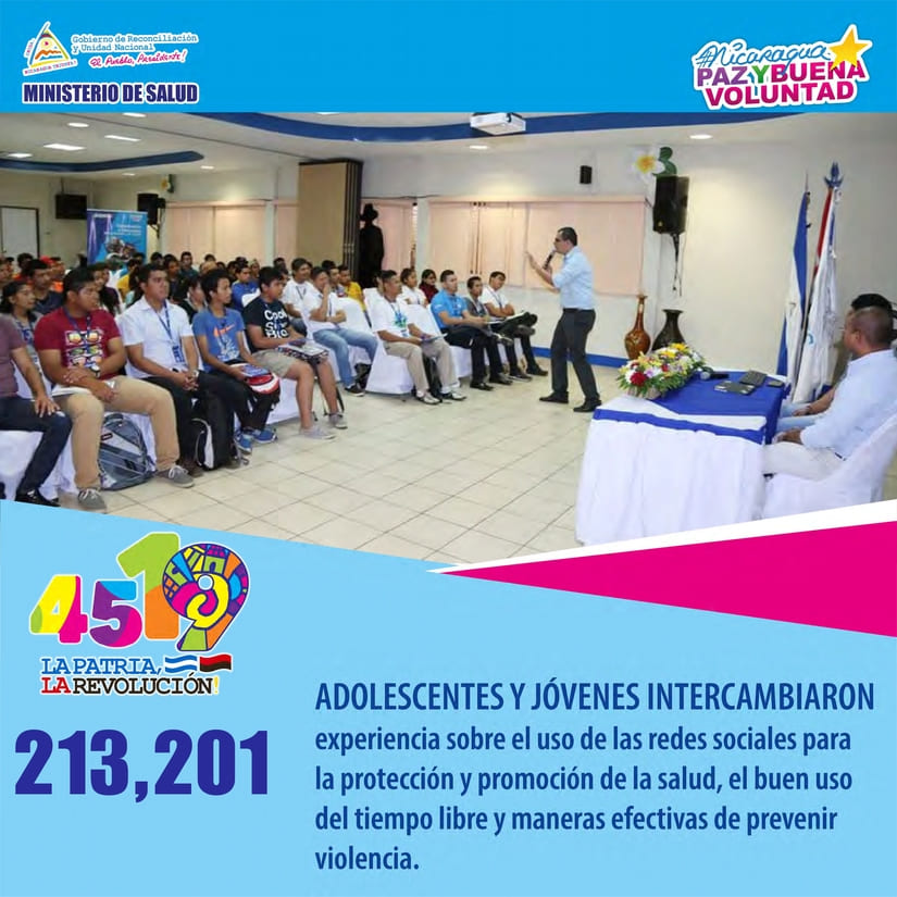-213,201 adolescentes, jóvenes intercambiaron experiencia sobre el uso de las redes sociales para la protección y promoción de la salud, el buen uso del tiempo libre y maneras efectivas de prevenir violencia.