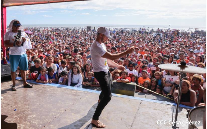 En Pochomil, el Instituto Nicaragüense de Turismo (Intur) instaló una tarima, donde el grupo musical Costa Azul, " El Imperio de la Cumbia", celebró junto a las familias este inicio de año nuevo.