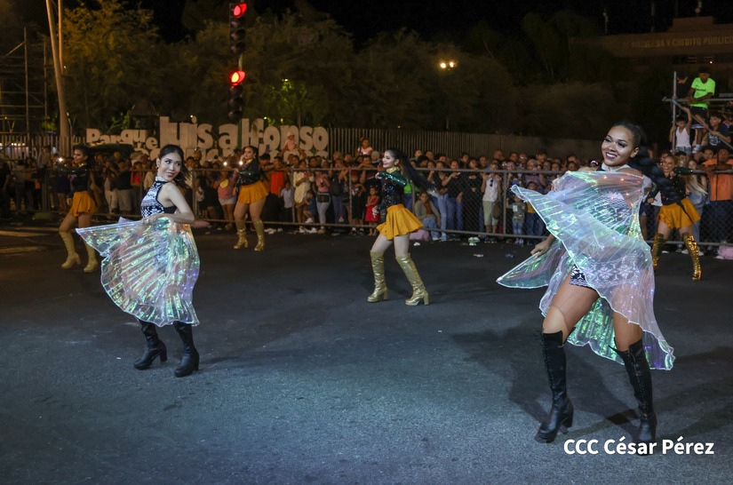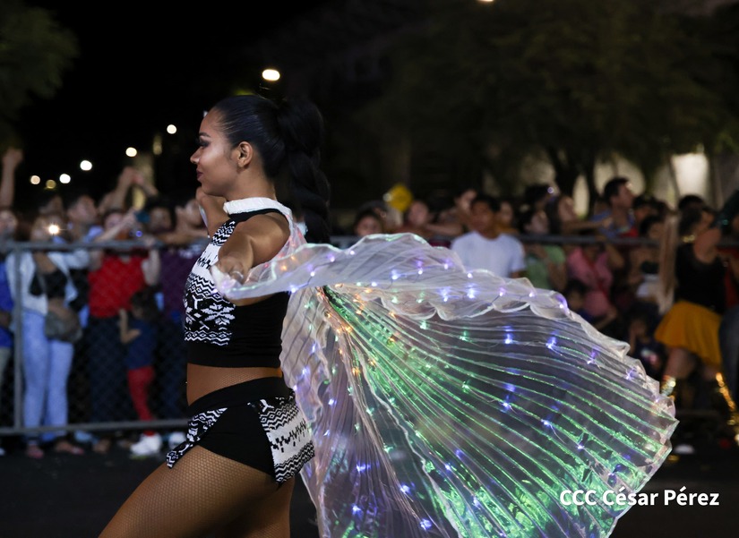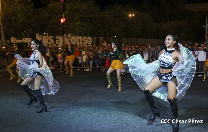 Con la participación de 10 comparsas de los distritos de la capital, la Alcaldía de Managua realizó el Carnaval de Año Nuevo 2024, en la Avenida de Bolívar a Chávez.