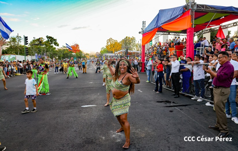 "Las comparsas están de lo mejor, tenemos aquí comparsas de distintos barrios de Managua, de todos los distritos, tenemos la comparsa del barrio Cuba, por ejemplo, tenemos la comparsa de Las Américas, la comparsa del barrio La Primavera, comparsas de todos los distritos de Managua", mencionó.