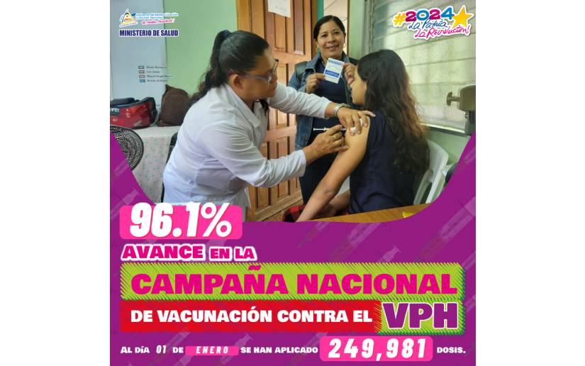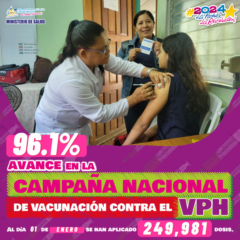Nuestro Buen Gobierno, con la Red Comunitaria, las Familias nicaragüenses y los Trabajadores de la Salud, realizamos la Campaña Nacional de Vacunación contra el VPH, brindando el siguiente Informe Preliminar al 01 de Enero 2024: