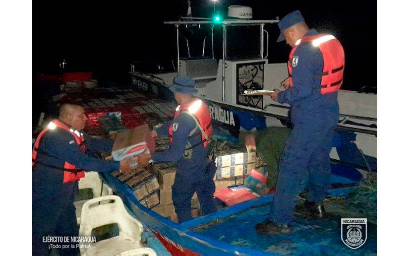 El Ejército de Nicaragua consecuente con el lema de que “Somos el Pueblo mismo uniformado trabajando en su propio beneficio”, el 30 de diciembre de 2023, a través de servicio operativo del Destacamento Naval de Aguas Interiores “Comandante Hilario Sánchez Vásquez” en el municipio de San Carlos, departamento de Río San Juan, retuvo 1 embarcación de nombre “El Cirilo”, en las coordenadas latitud j:11°07'24” N, longitud l:084°63'31 W, la tripulación al notar la presencia de efectivos militares se dieron la fuga, dejando abandonada la embarcación y la mercadería, los que pretendían trasladar por paso no habilitado hacía la República de Costa Rica cajas de productos diversos, violentando las leyes establecidas en el país.