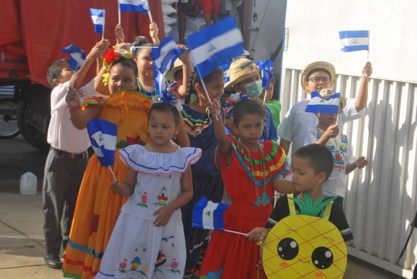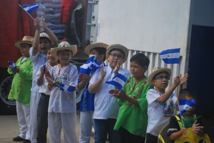 Niños y niñas de los diferentes colegios de Masaya, directores, subdirectores, docentes, padres y madres de familia, participaron en el acto de entrega de la Merienda Escolar en el Centro Escolar Cristóbal Rugama.