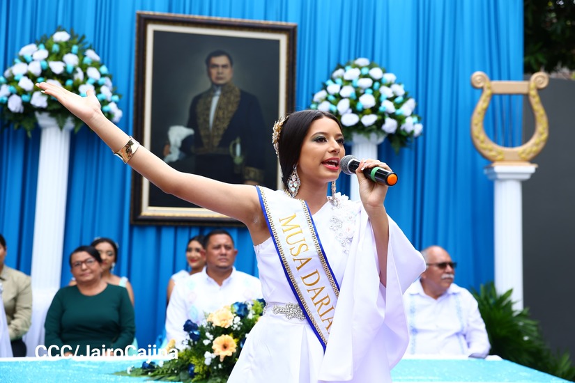 "Nuestro Rubén Darío, además de ser el Príncipe de las Letras Castellanas, fue filósofo, periodista y diplomático, y nos enseñó a fortalecer el conocimiento, el nacionalismo, la libertad, la justicia, el antiimperialismo, como lo describe en sus poemas y prosas. Sean todos bienvenidos a nuestra Ciudad Darío a este acto donde nos engalanan con estas fiestas de música, danza, cantó y poesía", señaló Ruiz.