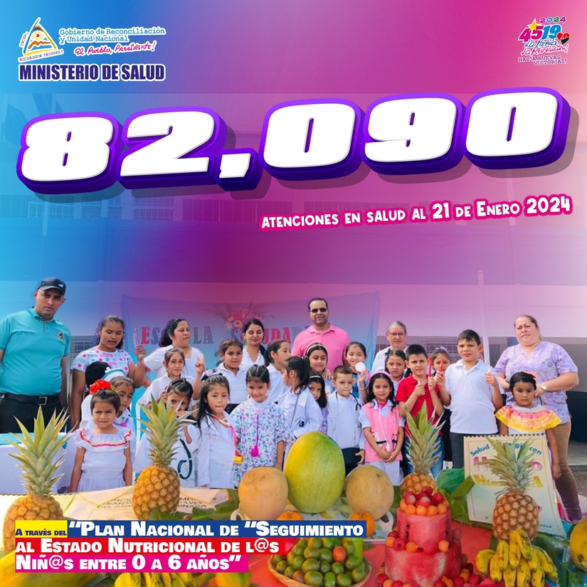 En cumplimiento a las actividades del Plan Nacional de “Seguimiento al Estado Nutricional de l@s Niñ@s entre 0 a 6 años”, al 21 de Enero 2024 hemos brindado 82,090 acciones detalladas a continuación: