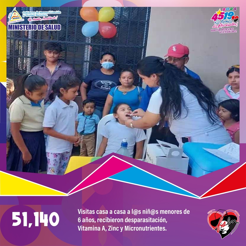 - 51,140 visitas casa a casa y en las escuelas a l@s niñ@s menores de 6 años, recibieron desparasitación, Vitamina A, Zinc y Micro-nutrientes.