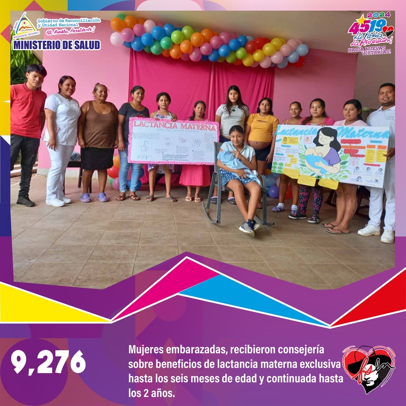 - 9,276 Mujeres embarazadas recibieron consejería sobre beneficios de la lactancia materna exclusiva hasta los seis meses de edad y la continuada hasta los 2 años.