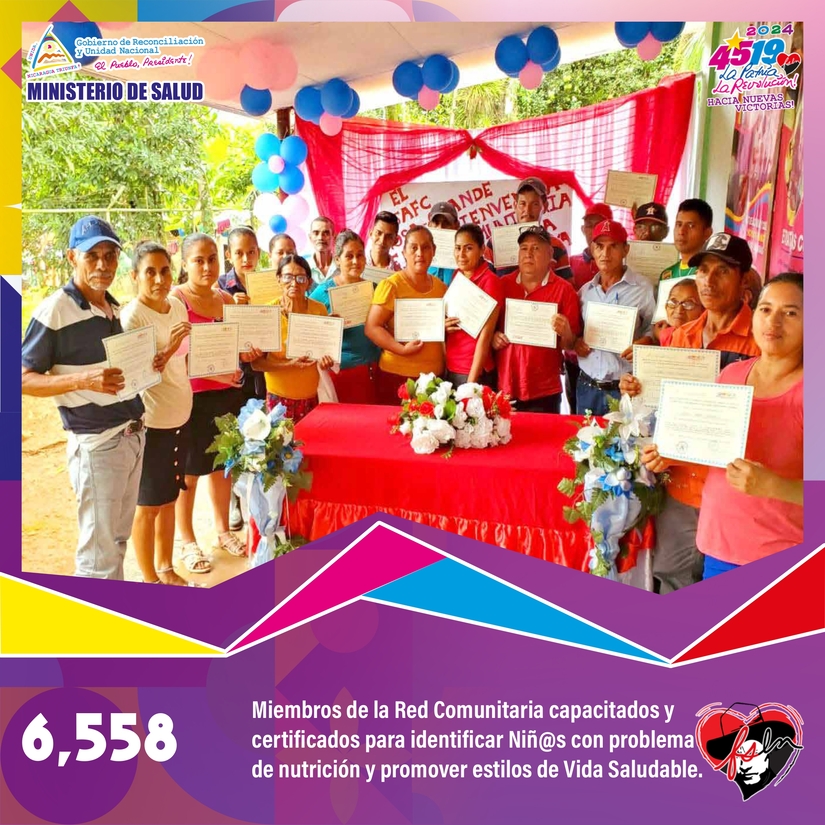 - 6,558 Miembros de la Red Comunitaria capacitados y certificados para identificar niñ@s con problema de nutrición y promover estilos de Vida Saludable.