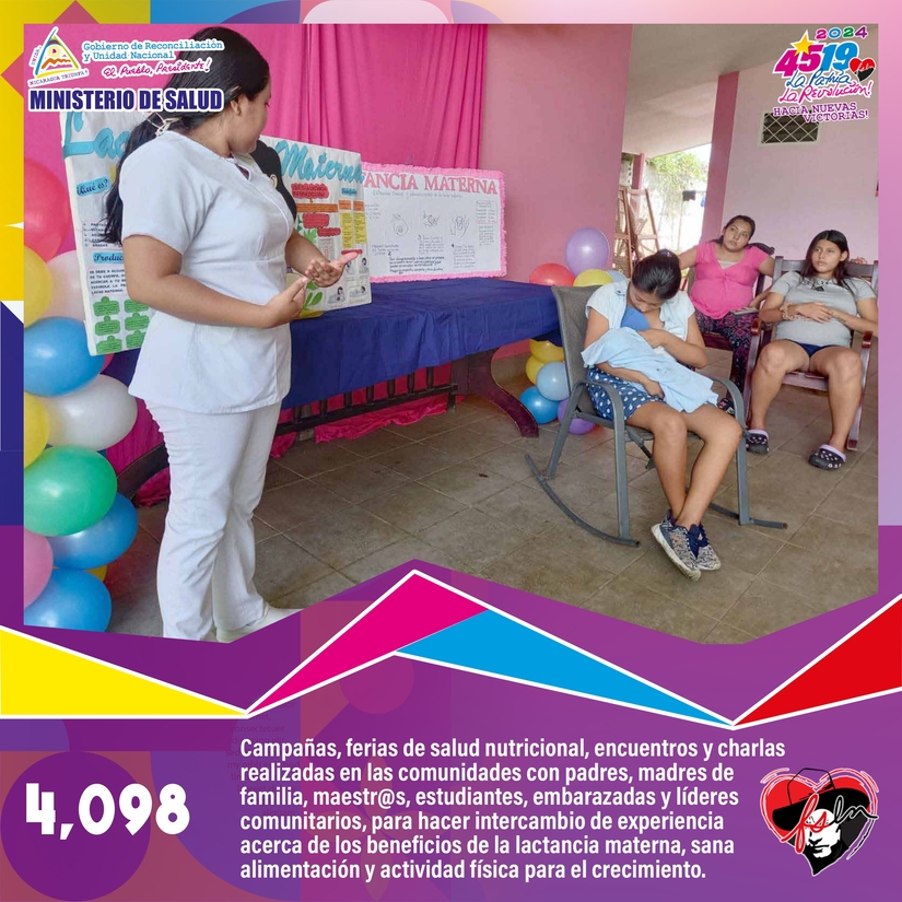 - 4,098 Campañas, Ferias de Salud Nutricional, Encuentros y Charlas realizadas en las Comunidades con Padres y Madres de Familia, Maestr@s, Estudiantes, Mujeres embarazadas y Líderes Comunitarios, para intercambiar experiencias acerca de los beneficios de la lactancia materna, alimentación sana y actividad física para el crecimiento.