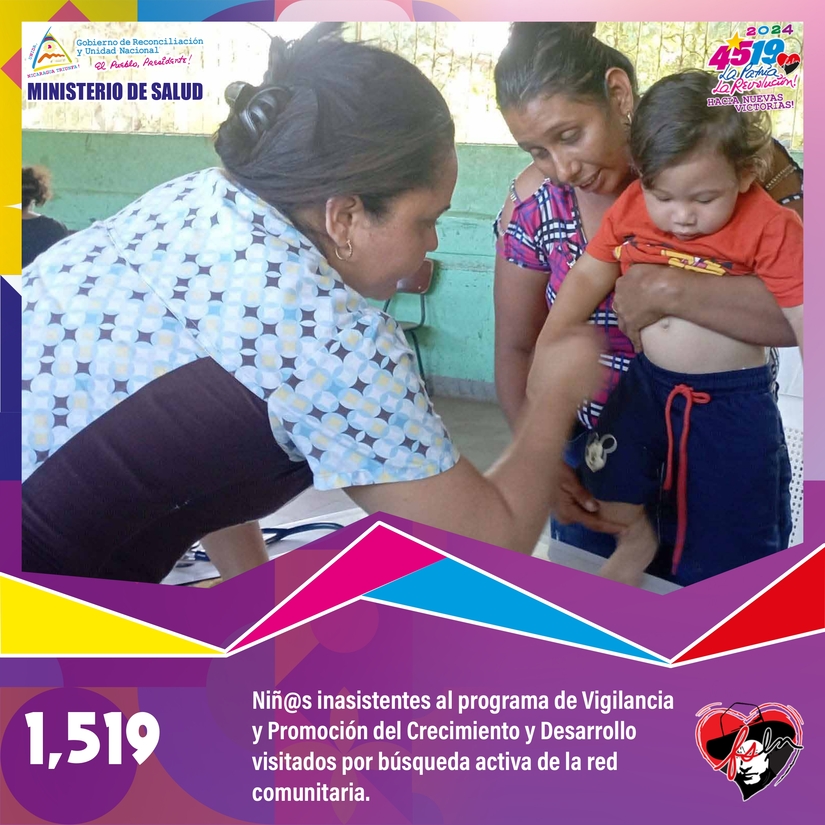 - 1,519 niñ@s visitad@s por la Red Comunitaria, como parte del Programa de Vigilancia y Promoción del Crecimiento y Desarrollo.