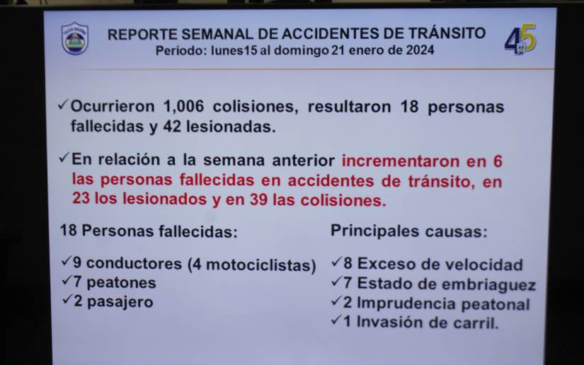 En cuanto al Plan Nacional de Emergencia Vial, el comisionado Vanegas aseguró que se continúa trabajando en coordinación con el Ministerio de Educación, la Alcaldía de Managua y otras entidades para garantizar la seguridad de los usuarios de las vías.