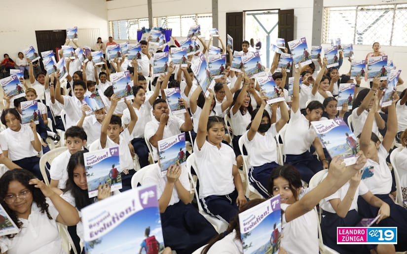 “Estamos entregando a más de 70 mil estudiantes este libro que además se acompaña de una plataforma, una aplicación que es parte del material educativo que complementará el aprendizaje. Este libro ha sido preparado y elaborado con un equipo de alto nivel y acompañamiento también de expertos internacionales, pero ha sido trabajado en el contexto nicaragüense”, agregó.