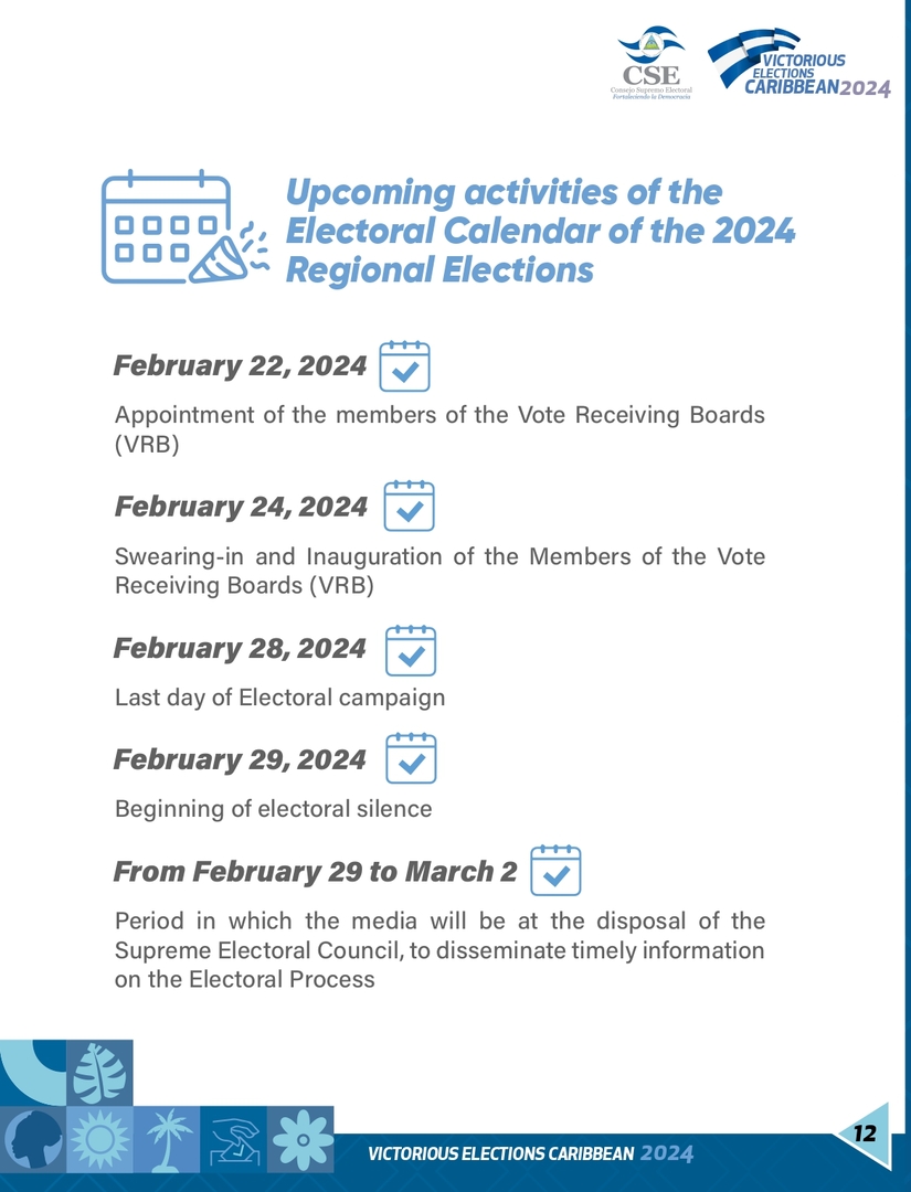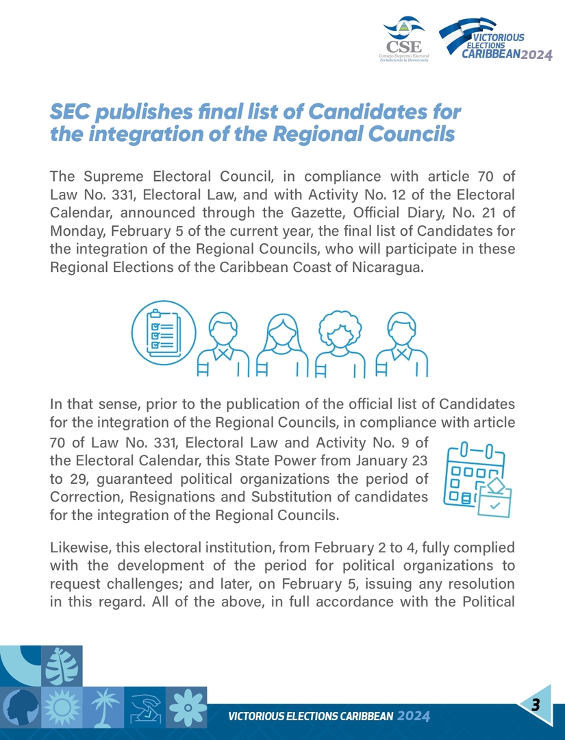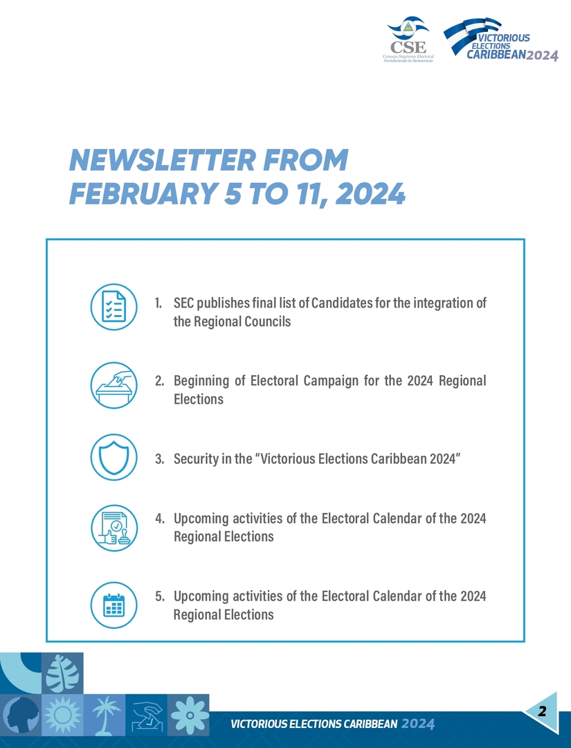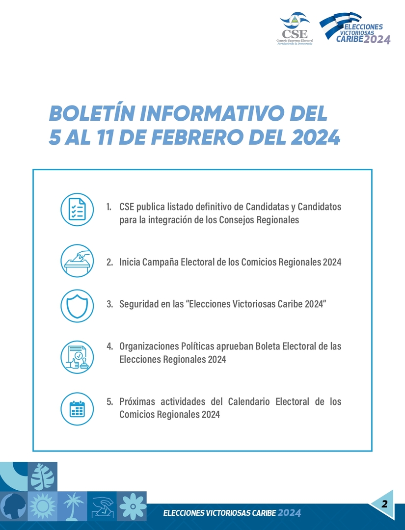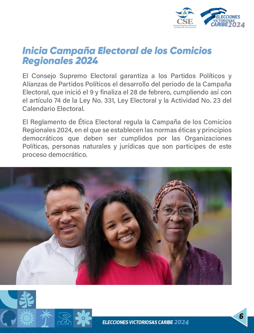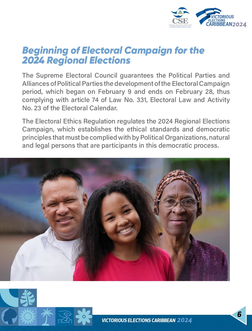 Compartimos en español e inglés, Boletín Informativo No. 6 del Consejo Supremo Electoral, Elecciones Victoriosas CARIBE 2024.
