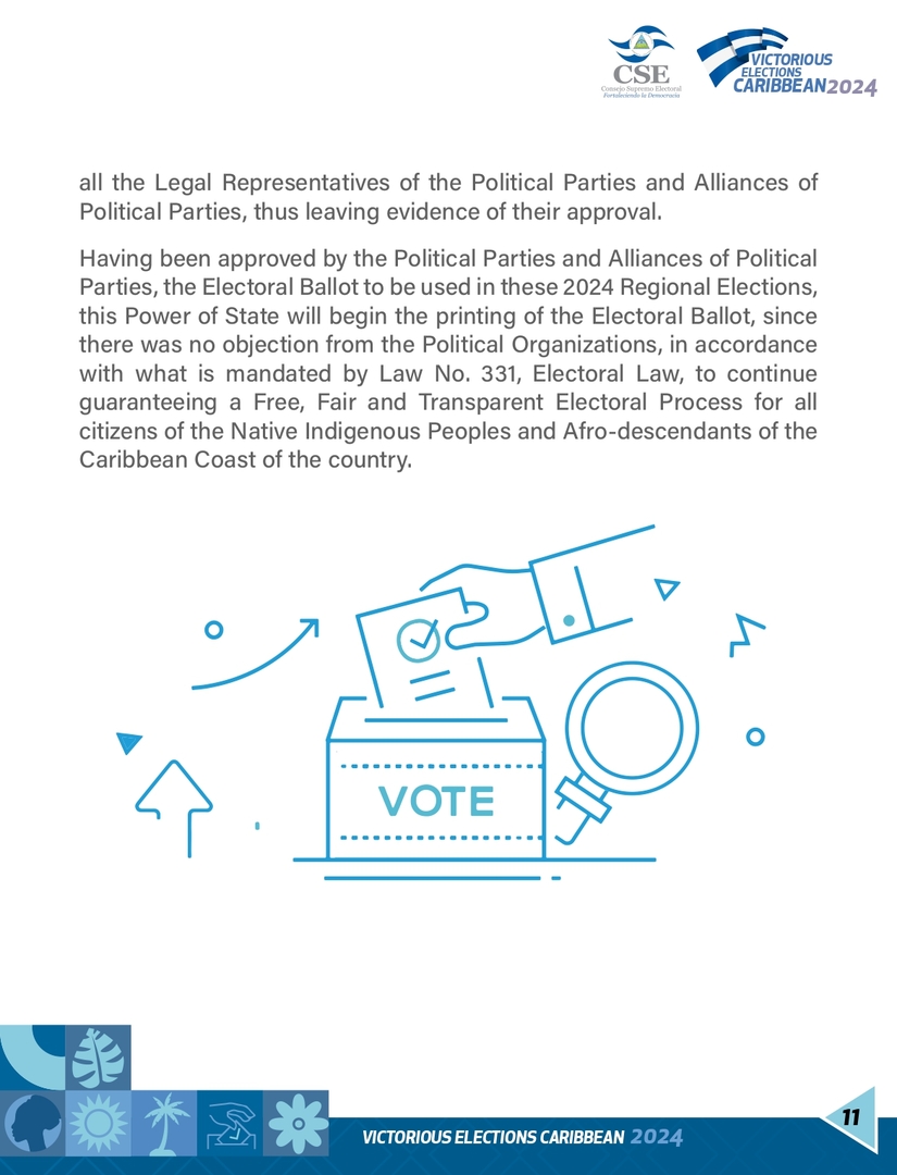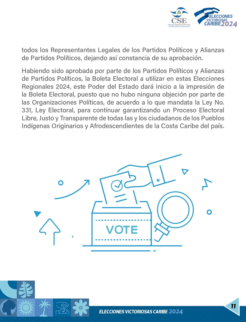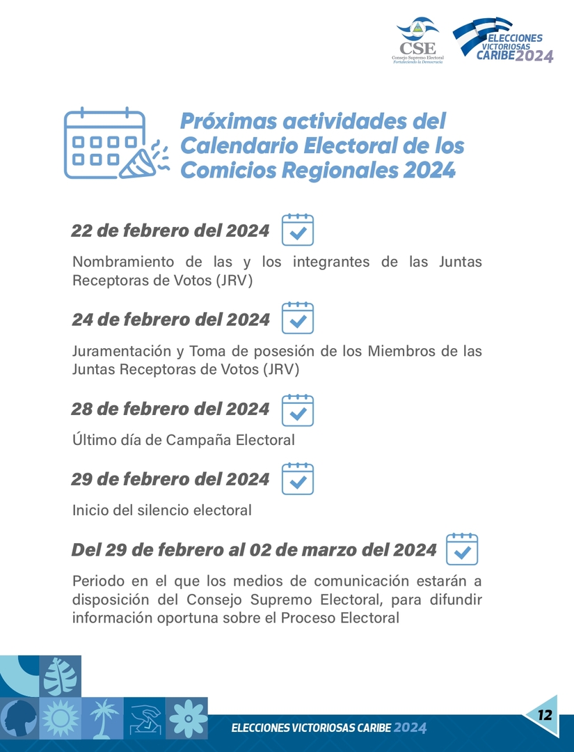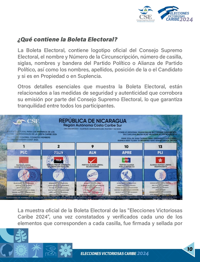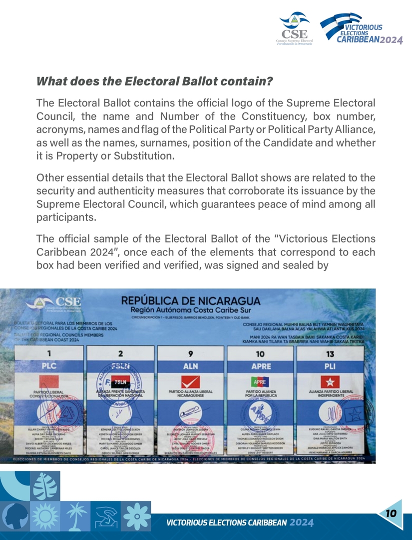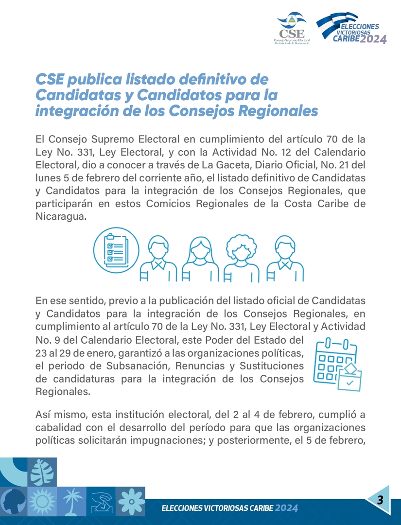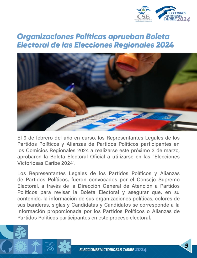 Compartimos en español e inglés, Boletín Informativo No. 6 del Consejo Supremo Electoral, Elecciones Victoriosas CARIBE 2024.