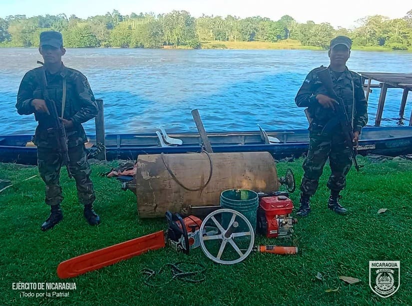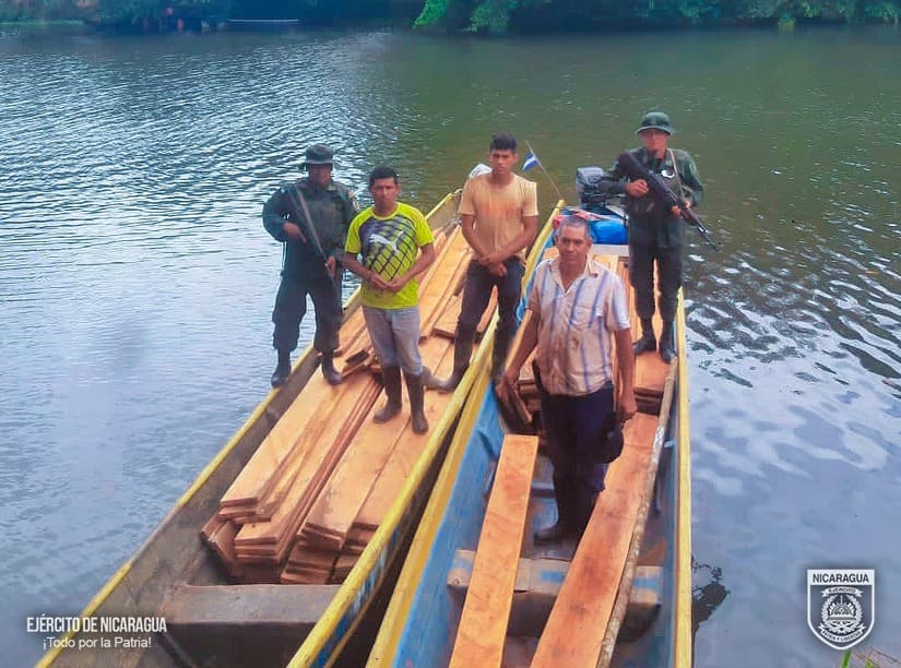 3. En los sectores de Las Cruces, La Venada y El Jobo, se retuvo a los ciudadanos nicaragüenses: Oscar Flores Herrera, José Adán Jarquín Gutiérrez, Moisés Dávila Benavides y Saúl Isaac Dávila González, a quienes se les ocuparon 3 motosierras y 2 botes con motor fuera de borda en los que trasladaban de manera ilegal 2,208 pie tablar de la especie Cedro y Fruta Dorada.