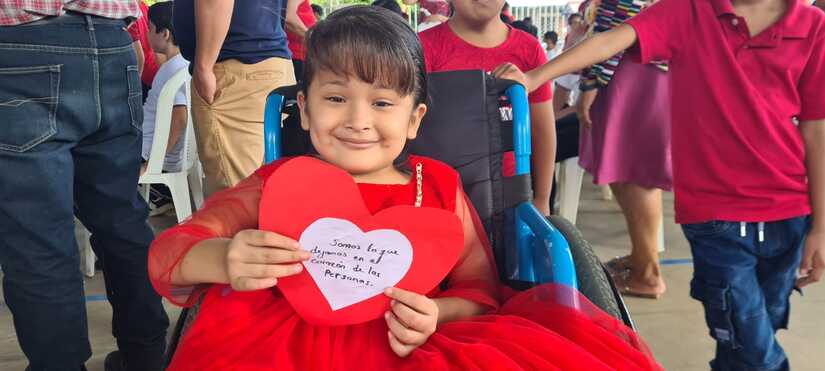 Niños y niñas de la Escuela de Educación Especial Melania Morales, protagonizaron el Festival del Amor Inclusivo este 14 de febrero Día del Amor y la Amistad.