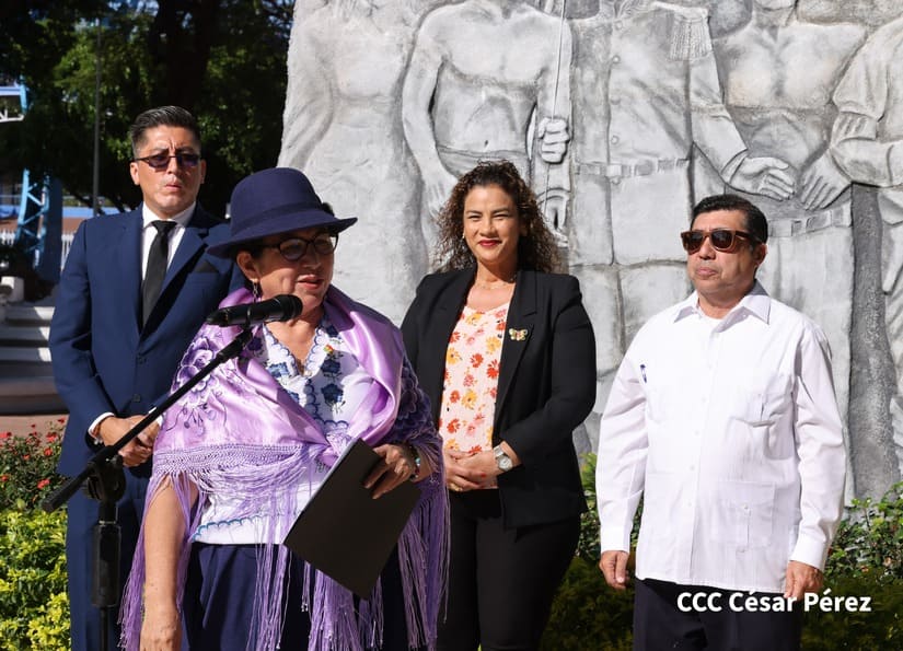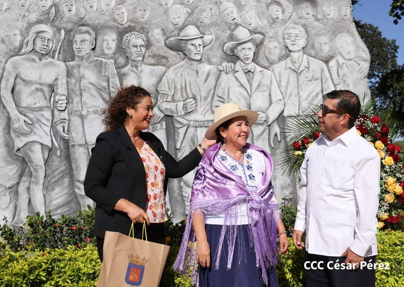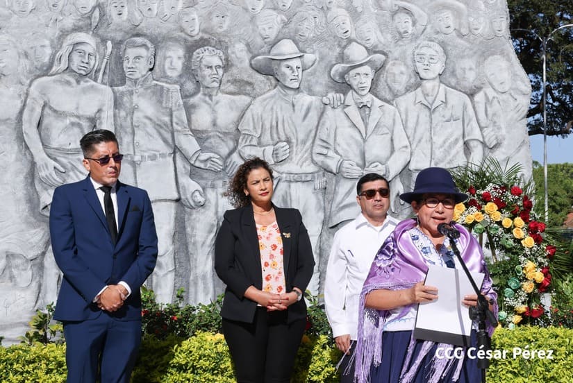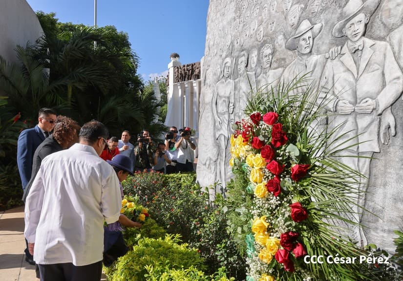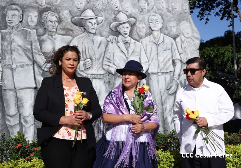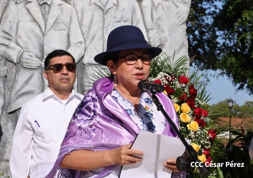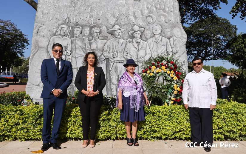 La Canciller del Estado Plurinacional de Bolivia, Celinda Sosa Lunda, quien se encuentra de visita en Nicaragua, colocó ofrenda floral en el Monumento a los Héroes ubicado contiguo a la Plaza de la Revolución, en Managua.