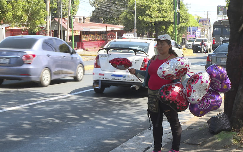En una de las calles de la capital, una emprendedora de globos los ofertó a 70 y 50 córdobas “para que les lleven a sus esposas o sus novias y llevan mensajes como ¡Te amo!, ¡I love!“, especificó la vendedora Guillermina González.