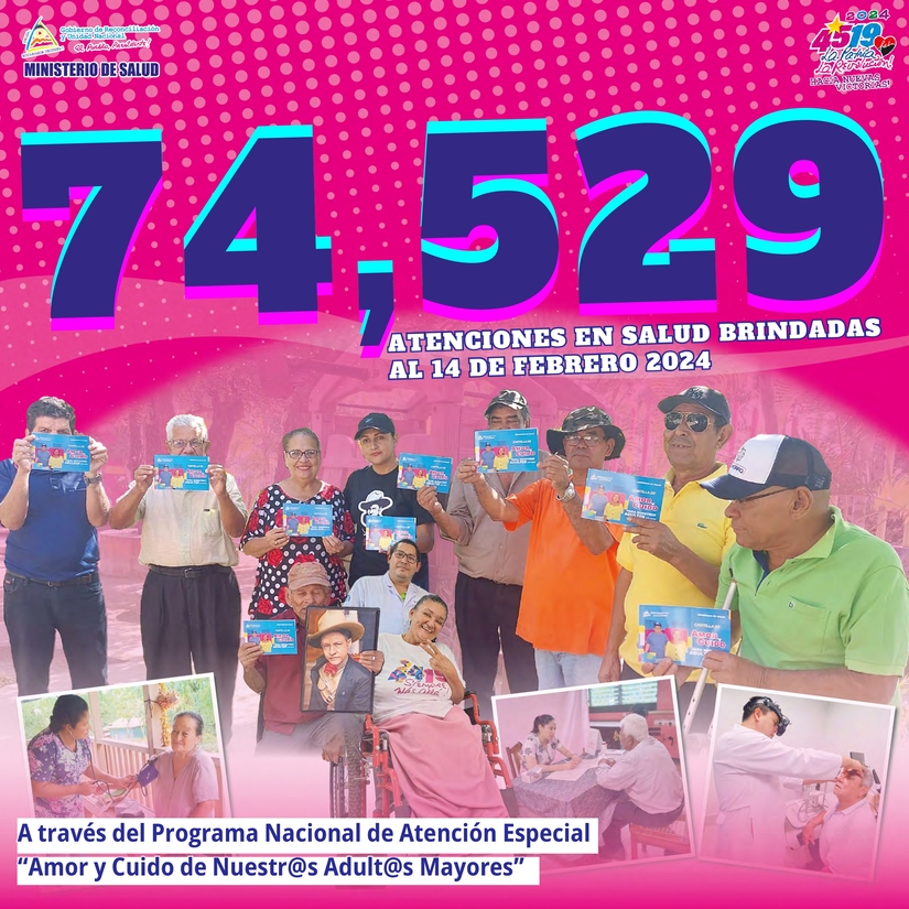 En cumplimiento al Programa Nacional de Atención Especial “Amor y Cuido de Nuestros Adultos Mayores”, al 14 de febrero de 2024 hemos brindado 74,529 atenciones detalladas a continuación: