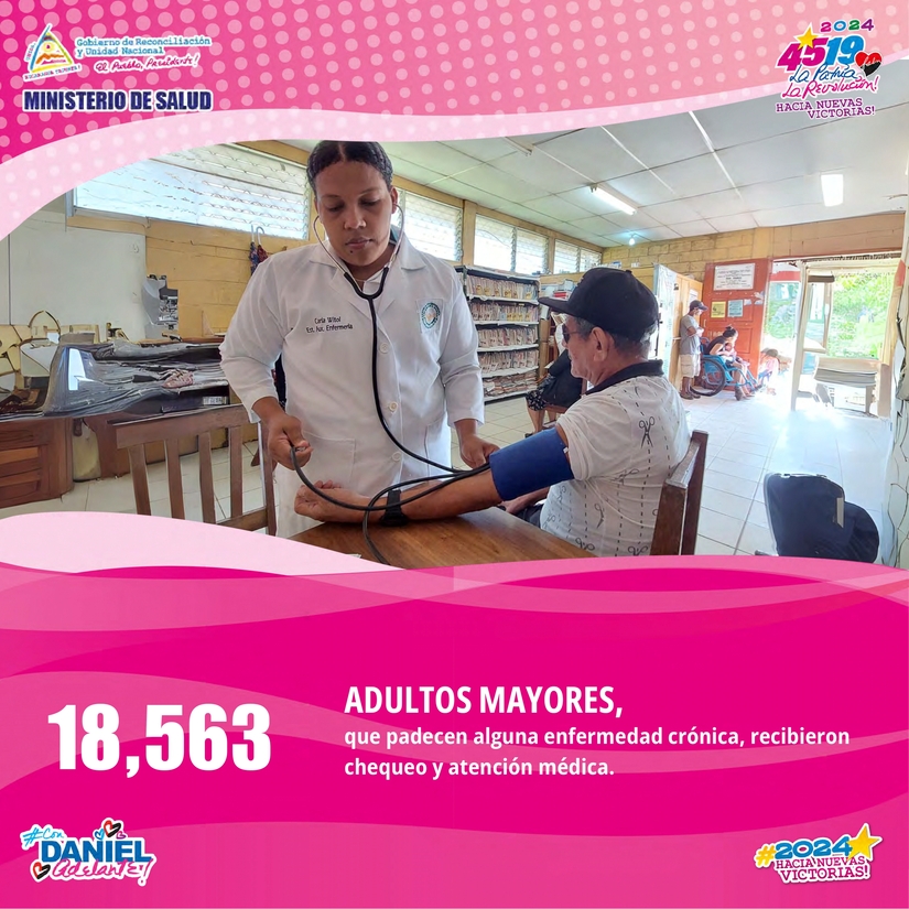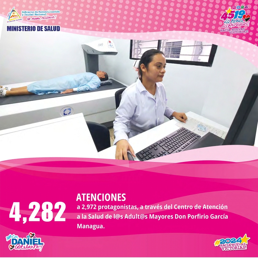 • 4,282 atenciones a 2,972 protagonistas, a través del Centro de Atención a la Salud de los Adultos Mayores Don Porfirio García-Managua.