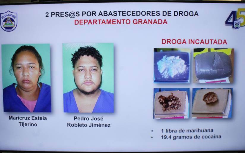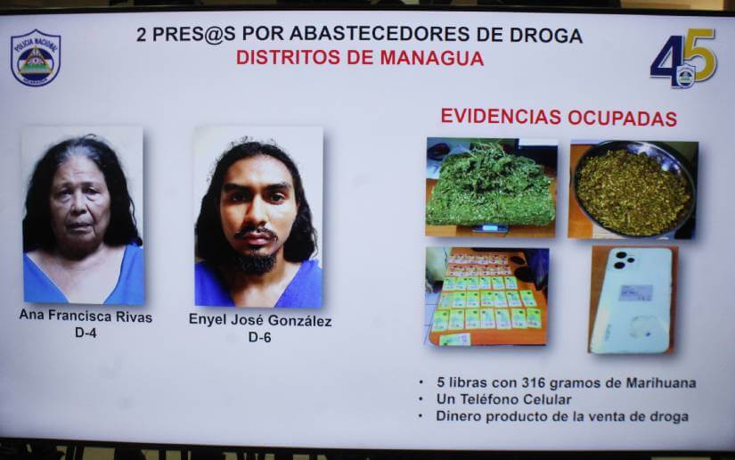 "En Managua fueron capturados Ana Francisca Rivas y Engell José González. A ellos se les ocupó 5 libras de marihuana, un teléfono celular y dinero producto de la venta de droga", agregó.