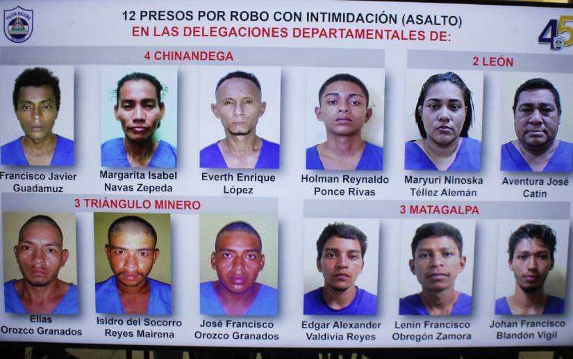 Finalmente, mencionó a 12 sujetos que son señalados por el delito de robo con intimidación. Estas personas robaban en Chinandega, León, Triángulo Minero, Matagalpa, Matagalpa. Entre las evidencias ocupadas están un revólver, una pistola, una escopeta calibre 12 y un arma de fuego artesanal, apta para el disparo.