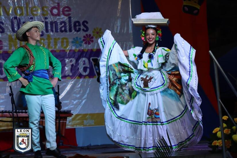 Este Sábado 17 de Febrero, en la Plaza de la Liberación “Juan José Quezada” de la Ciudad Creativa de León se llevó a cabo la celebración del Primer Festival Departamental de Trajes Originales Nuestro Folklore; para destacar la originalidad de los trajes, los cuales son portados con orgullo en la amplia diversidad de expresiones artísticas, tradicionales y autóctona de los Pueblos, y reconocer el talento creativo de los artesanos que los confeccionan.