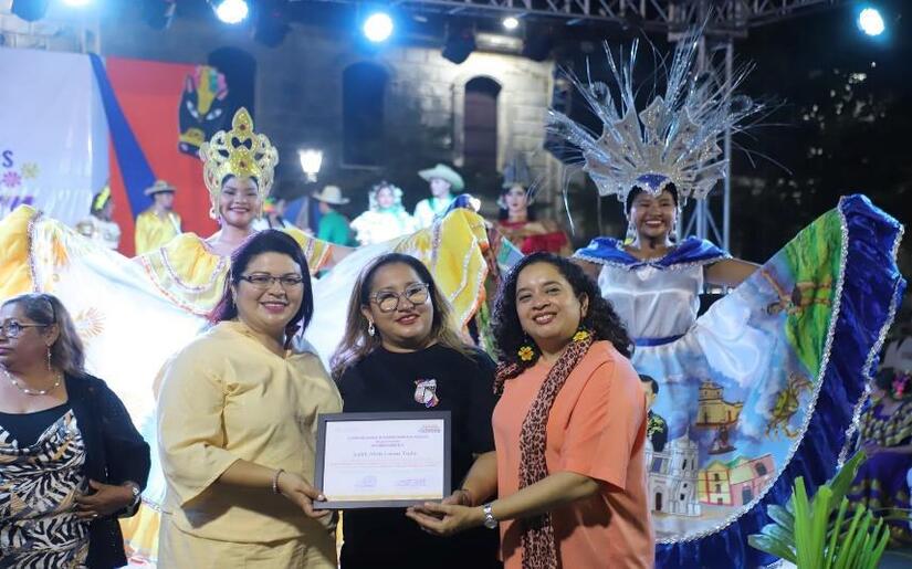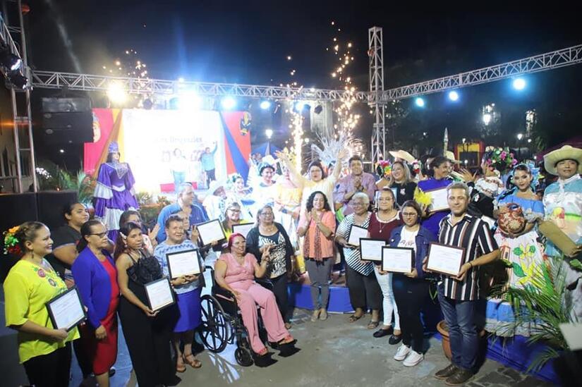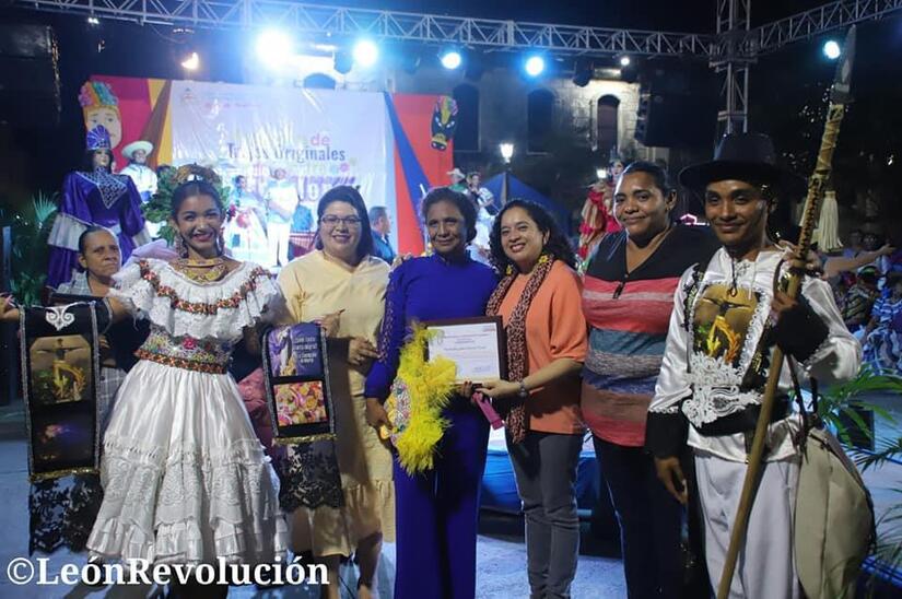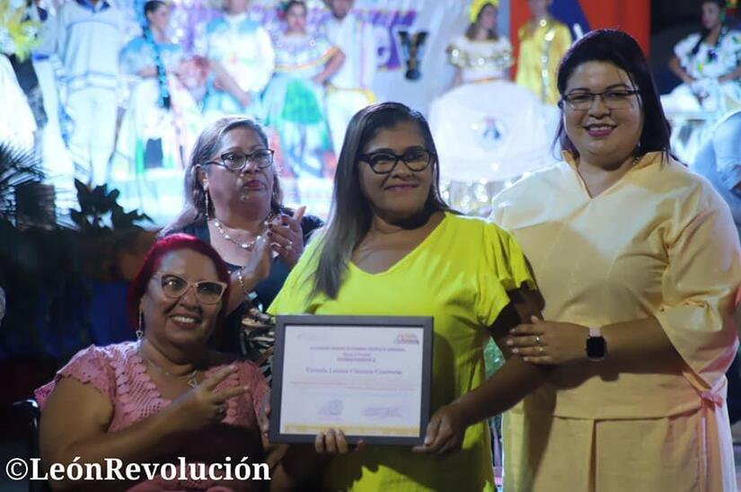 En la entrega de reconocimiento, presidieron la Compañera Guissela Lacayo Medrano, Alcaldesa de la Ciudad Creativa de León y la Compañera Javiera Pérez Guerra, en representación del Instituto de Culturas de Juventudes y Pueblos de Nicaragua, así como Alcaldes, Alcaldesas, Vicealcaldes y Vicealcaldesas de los Municipios de León.