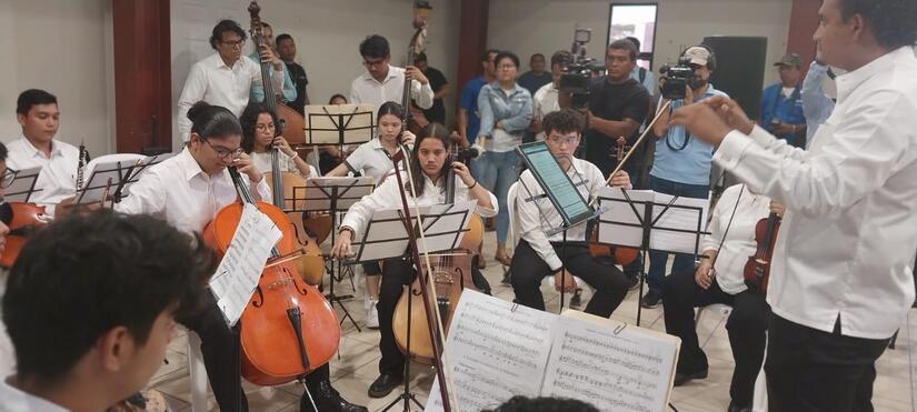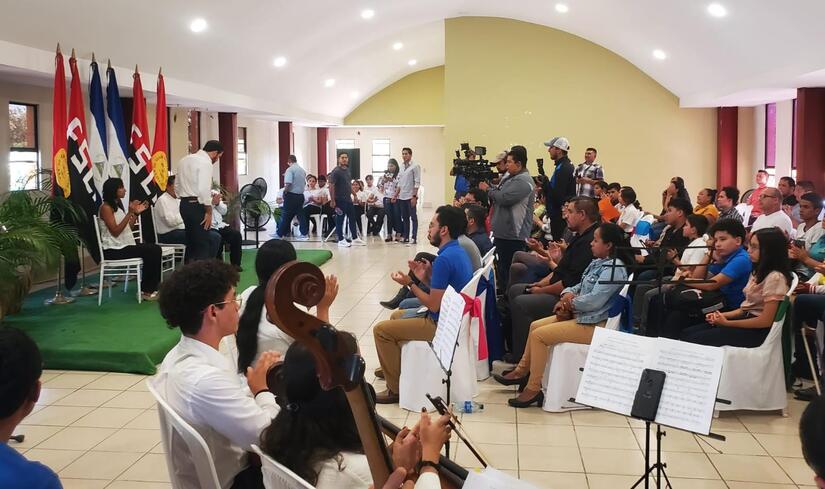 Ante más de 70 protagonistas e Instructores de Coros y Orquestas pertenecientes al Proyecto de Coros y Orquestas Estudiantiles del MINED, este lanzamiento estuvo presidido por el Cro. Laureano Ortega, Asesor para Inversiones, Comercio, cooperación Internacional de la República de Nicaragua; Cro. Salvador Vanegas, Ministro Asesor para Temas Educativos; Cro. Ramón Rodríguez, Director del Teatro Nacional Rubén Darío, la joven Camila Sandino, Estudiante de la Cátedra de Violín de la Escuela Alfredo Barreras y la participación musical de los estudiantes de la Cátedra de Flauta Traversa Dylan Taboada y Eunsol Lee.