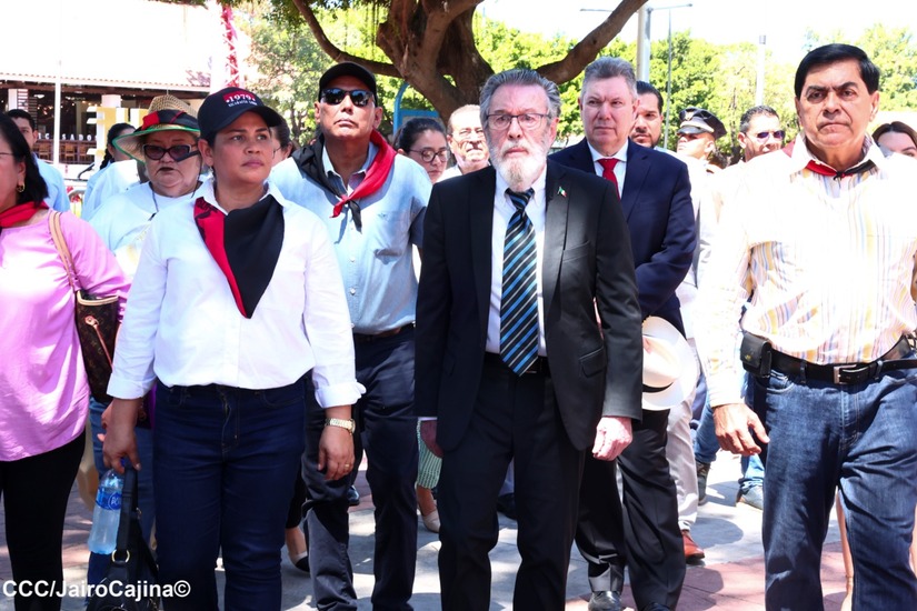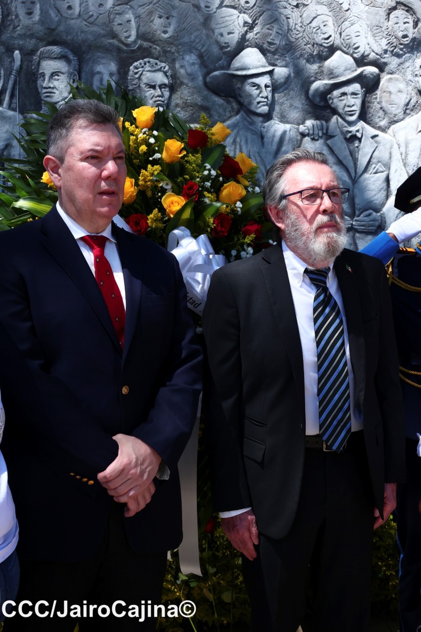 El Grupo Parlamentario de Amistad Nicaragua-México y la Embajada de México en Nicaragua, representada por el Sr. Embajador Guillermo Zamora y Villa, en el Monumento de los Héroes de la Patria, conmemoraron el 90 aniversario del paso a la inmortalidad del General Augusto C. Sandino.